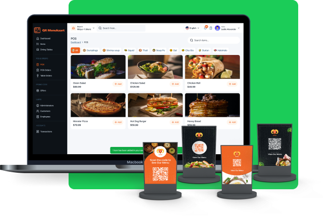 - Genereer één QR-code per tafel of één centrale QR-code voor het hele restaurant.