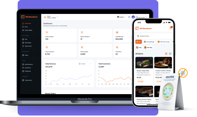 - Voeg gerechten, beschrijvingen, prijzen en foto’s toe via het webdashboard.