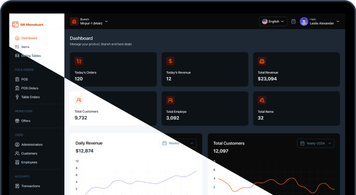 - Voeg gerechten, beschrijvingen, prijzen en foto’s toe via het webdashboard.